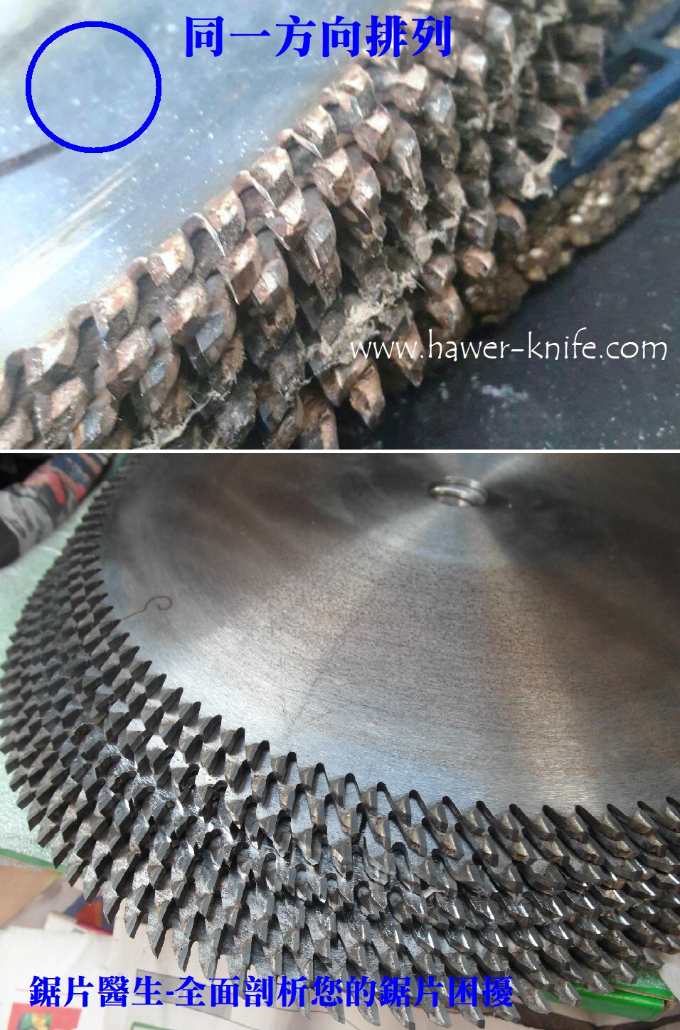 因為鋸片在運送過程中,由於刀頭交錯擺放而且重疊(沒有單一包裝) , 鋸齒容易反方向的齒給碰傷或缺角/崩角!!